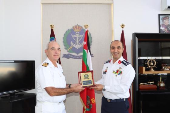 Italian Navy Capt. Roberto Messina, who assumed command of CTF 153 in April, met Col. Hisham Khaleel Aljarrah, commander of the Royal Jordanian Navy Force, to discuss international maritime security issues, provide an update on current maritime challenges in CTF 153's area of operations, and the importance of the Aqaba port.