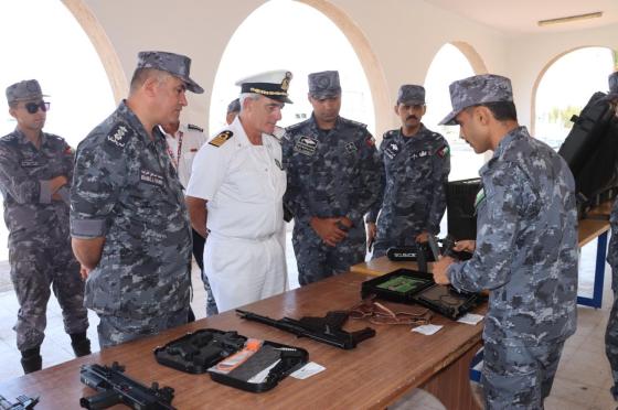 Messina also toured the RJNF's naval operations center, which uses the latest sensor technology to track all movements occurring in Jordanian territorial waters. Additionally, Messina visited the robotics center, which specializes in the development and use of unmanned aerial vehicles and unmanned surface vessels. These vessels are responsible for conducting underwater defense operations.